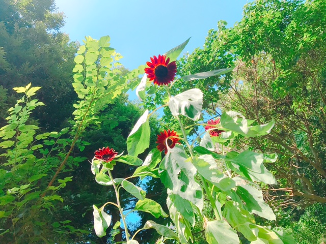 ひまわりは黄色いイメージがあるのでとても新鮮ですね![]()