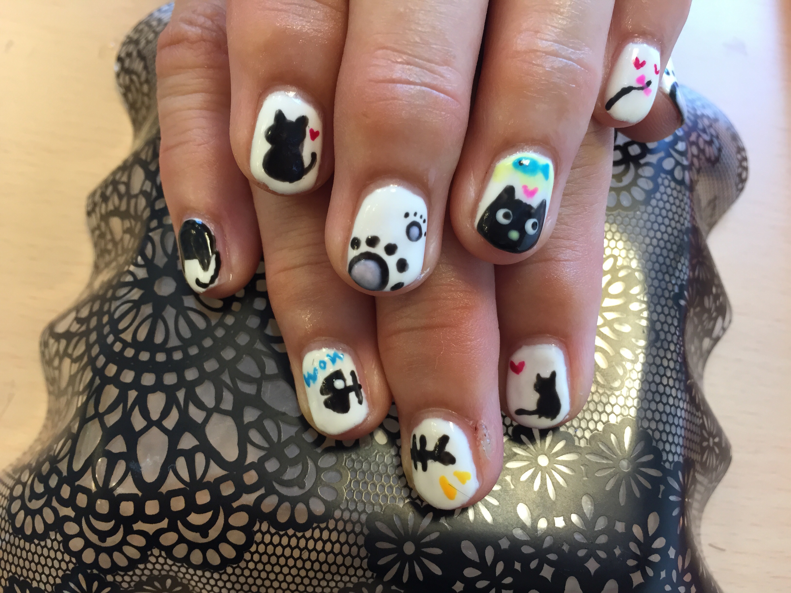 二つの猫ちゃんデザインを織り交ぜた猫ちゃんネイル(ミ^ω^ミ)